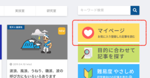 PC表示の場合は画面右側の「マイページ」を、スマホ表示の場合は画面下部のMENU→お気に入りをタップすると保存した記事の一覧が表示されます。